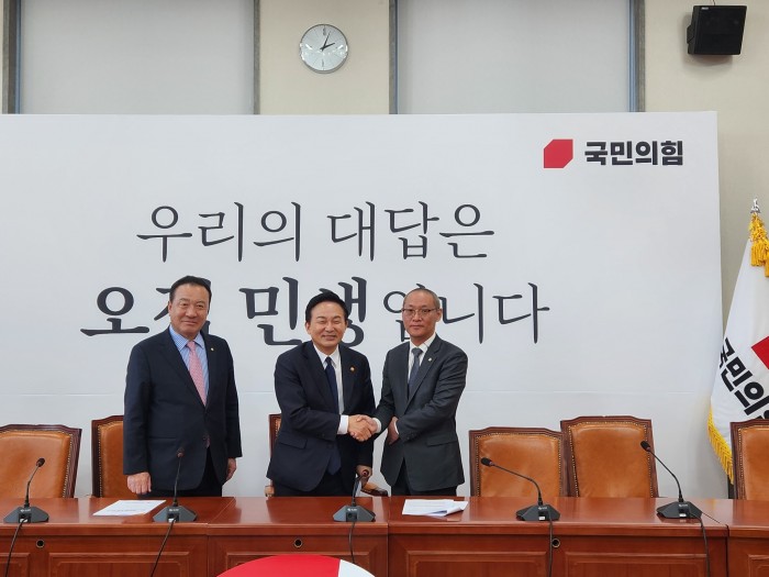 좌로부터 엄태영 국회 국토교통위 의원, 원희룡 국토교통부 장관, 홍주의 대한한의사협회장.