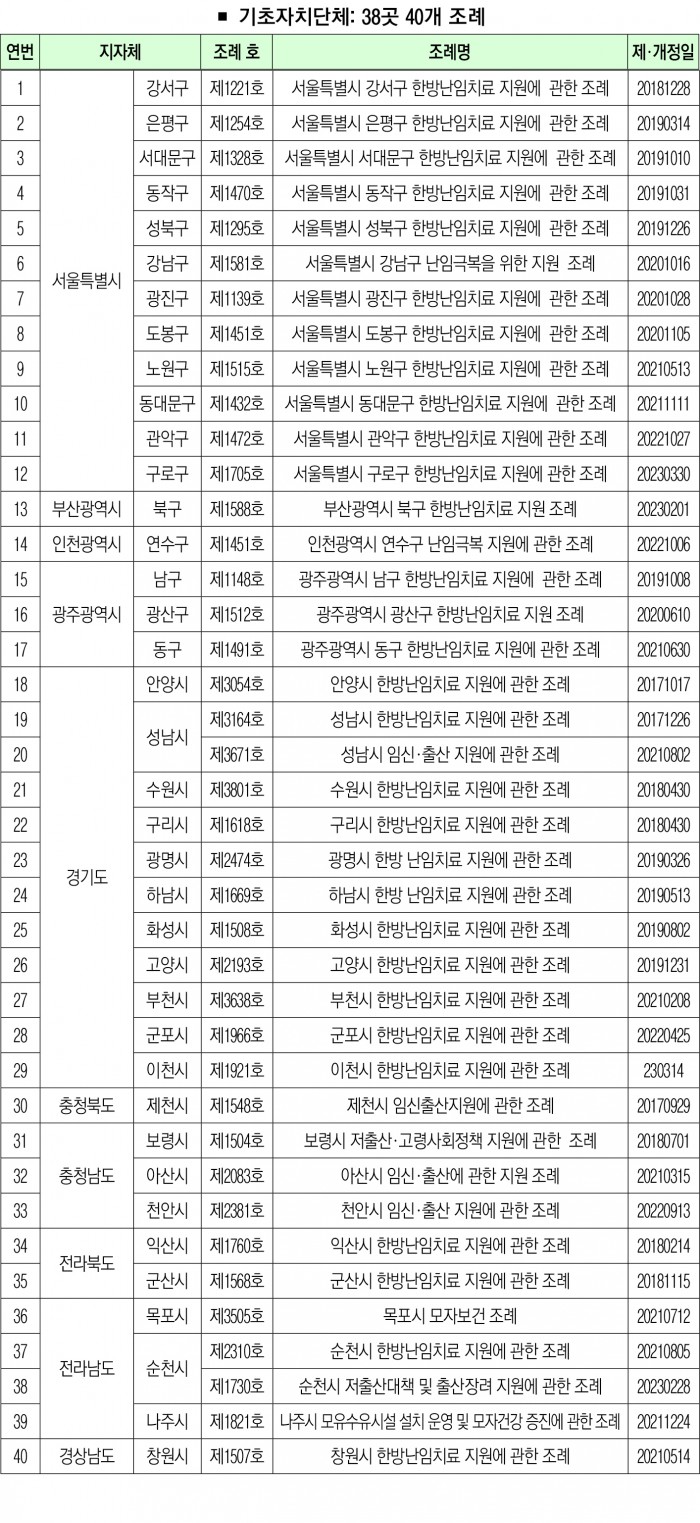 실제 한의난임치료 지원 사업과 관련한 조례를 제정해 운영하는 광역자치단체는 13곳에 이르고, 기초자치단체는 38곳에 이른다.